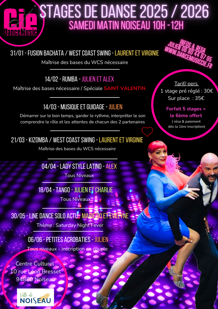 Accueil » News » Stage RUMBA Samedi 14 février 2026Stage RUMBA Samedi 14 février 2026par DanceMusicCie4 novembre 202531 janvier 2026 Laisser un commentaire Annuler la réponseVotre adresse e-mail ne sera pas publiée. Les champs obligatoires sont indiqués avec *Commentaire * Nom * E-mail * Site web Enregistrer mon nom, mon e-mail et mon site dans le navigateur pour mon prochain commentaire.