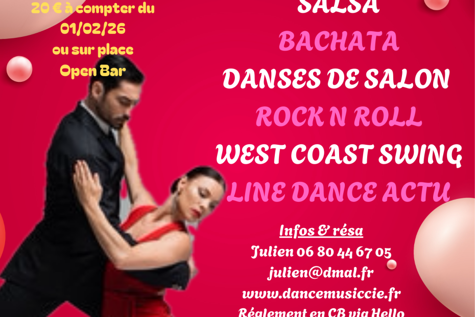 Stages Samedi 31 janvier 2026 Fusion West Coast Swing / Bachata (8 places disponibles)par DanceMusicCie4 novembre 202517 janvier 2026